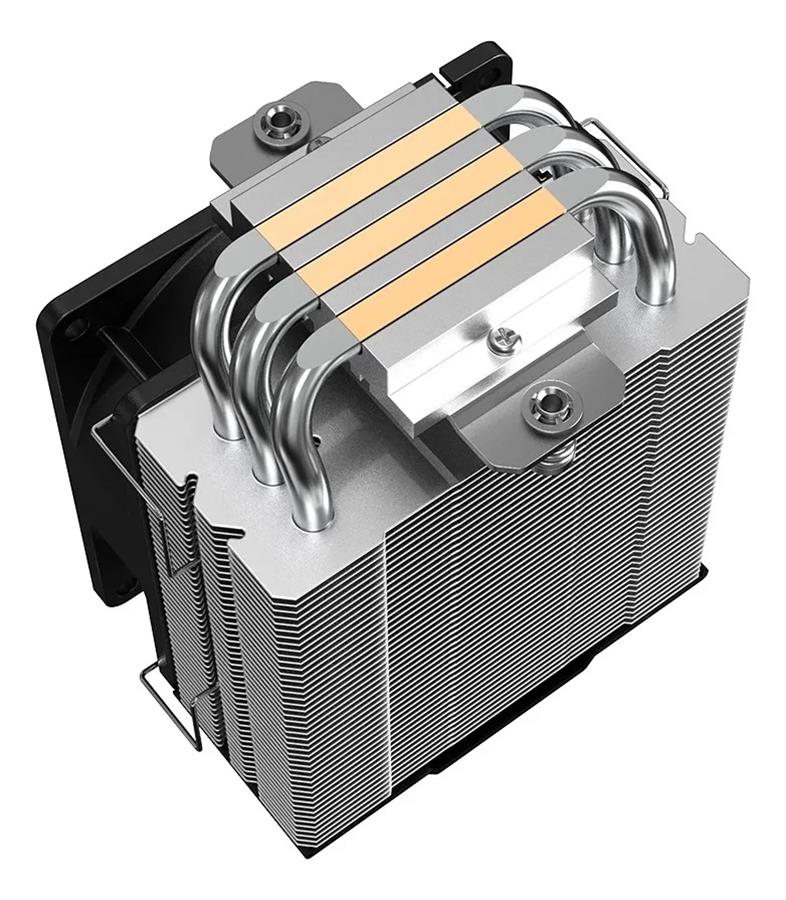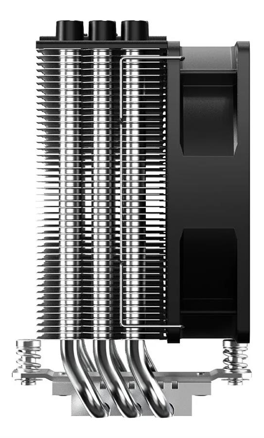 Diseño del disipador: Torre compacta con 3 heat‑pipes de contacto directo de 6 mm y aletas de aluminio