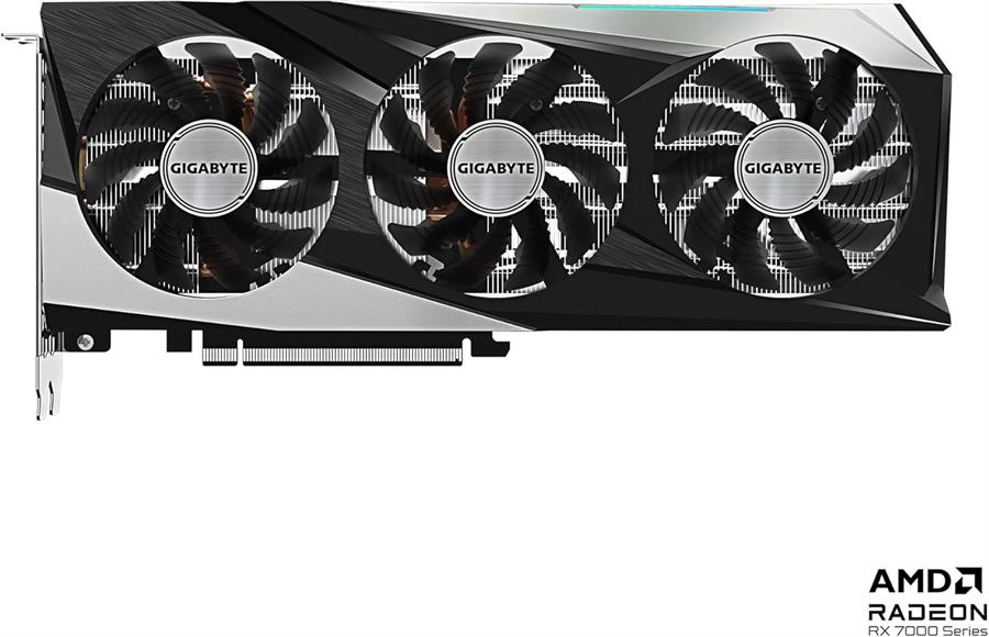 La tarjeta gráfica Gigabyte GV-R76GAMING OC-8GD está basada en la arquitectura AMD RDNA 3 y está diseñada para ofrecer un rendimiento excepcional en juegos y aplicaciones gráficas intensivas a 1080p. Sus principales características son:Procesador Gráfico: AMD Radeon RX 7600, con frecuencias de reloj de hasta 2755 MHz en modo Boost y 2355 MHz en modo Gaming.Memoria: 8 GB de memoria GDDR6 con una interfaz de 128 bits y un ancho de banda de 18 Gbps.Sistema de Refrigeración WINDFORCE: Equipado con tres ventiladores de 80 mm con aspas únicas, tecnología de giro alternativo y ventilador activo 3D para una disipación de calor eficiente.Conectividad: Dos puertos HDMI 2.1a y dos DisplayPort 1.4a, permitiendo múltiples opciones de conexión para monitores y otros dispositivos.Dimensiones: La tarjeta mide 282 mm de largo, 115 mm de ancho y 50 mm de alto, ocupando 2.5 ranuras PCIe en el gabinete.Requisitos de Energía: Se recomienda una fuente de alimentación de 550W y cuenta con un conector de alimentación de 8 pines.Tecnologías Adicionales: Compatible con DirectX 12 Ultimate y OpenGL 4.6, ofreciendo soporte para las últimas tecnologías gráficas.