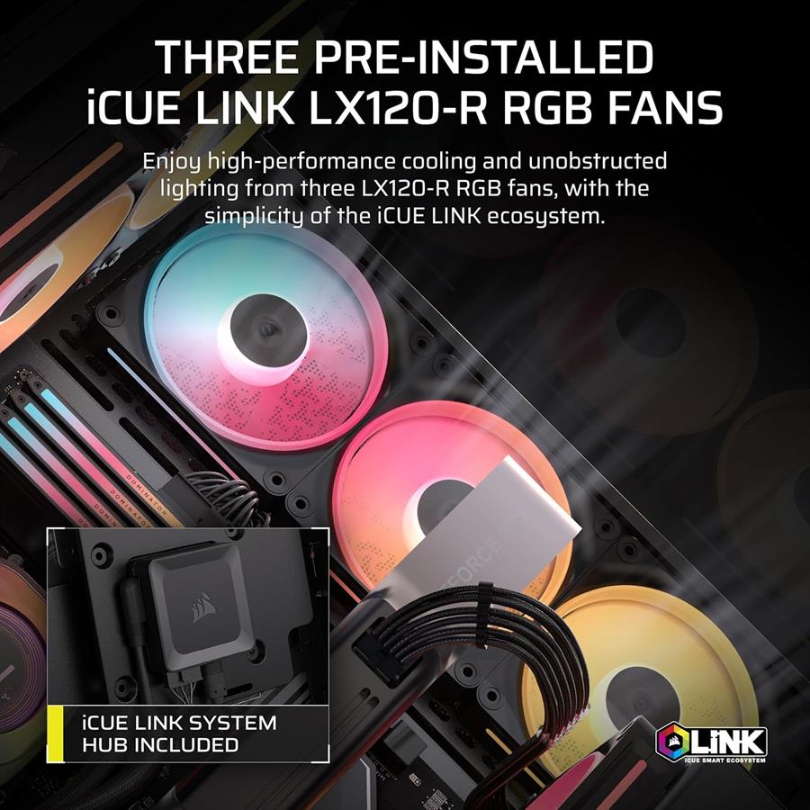 Ventiladores incluidos: 3 ventiladores iCUE LINK LX120-R (Preinstalados en el lateral) ***