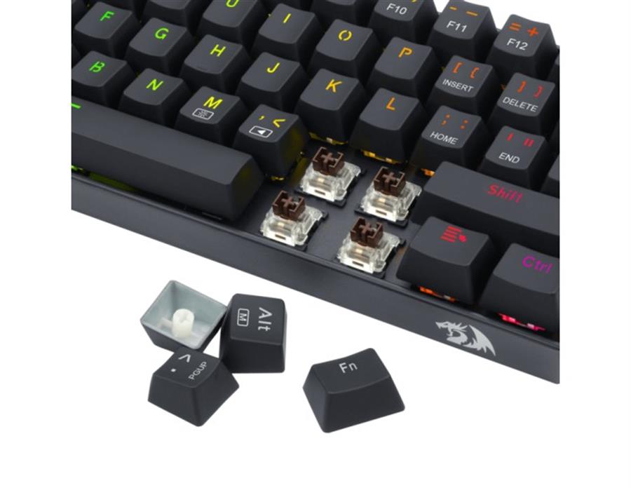 Los interruptores marrones táctiles brindan un golpe suave pero sin clic, a diferencia de los interruptores azules para un uso silencioso. Intercambiable en caliente con otros conmutadores Redragon. Hecho para durar con interruptores clasificados para 50 millones de pulsaciones de teclas.