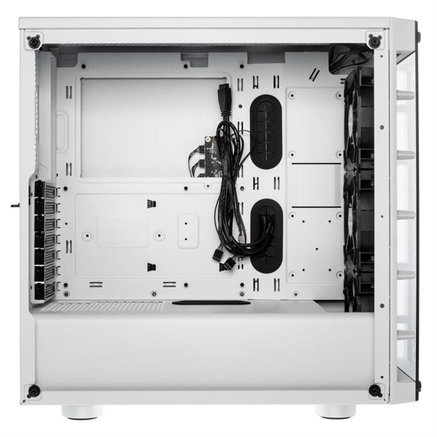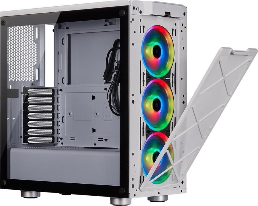 Corsair icue 465x rgb es un chasis inteligente atx semitorre que ofrece una iluminación brillante desde el principio con tres ventiladores ll120 rgb y dos paneles de cristal templado.