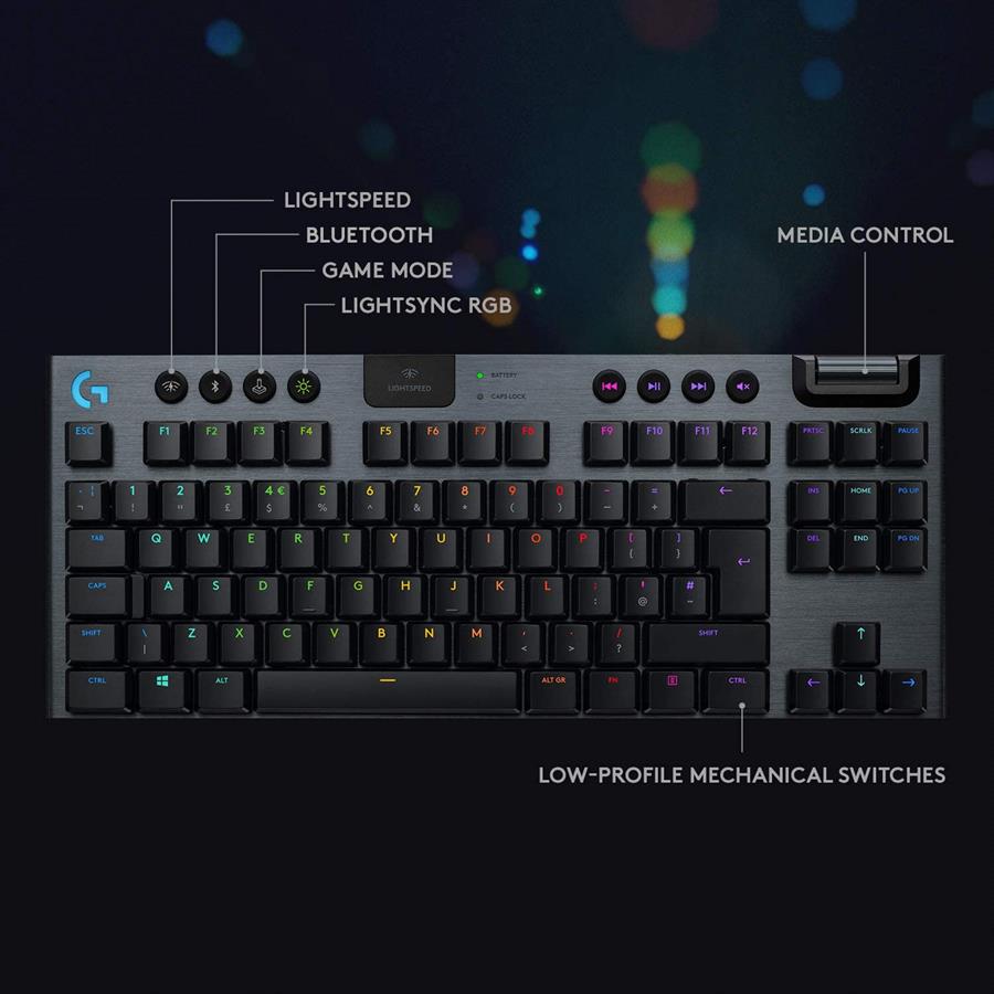 Logitech G915 TKL Teclado mecánico inalámbrico RGB con tecnología inalámbrica LIGHTSPEED para juegos sin teclado numérico RGB LIGHTSYNC avanzada e interruptores mecánicos de perfil bajo y nivel profesional