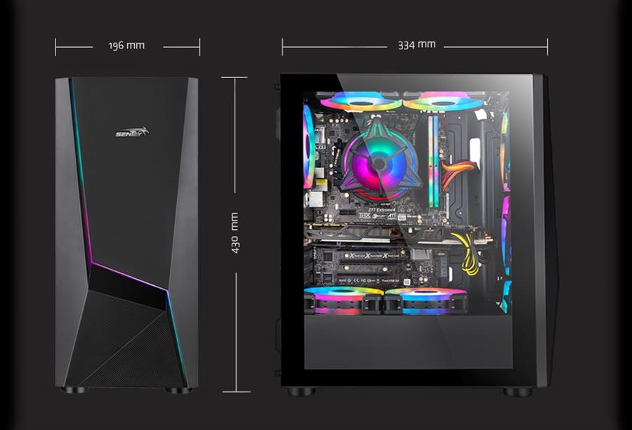 Frente Negro RGBTamaño máximo VGA 265 mmMotherboard Compatibles ATX, Micro ATX, MINI ITXUSB 3.0 y 2.0Panel Lateral Transparente