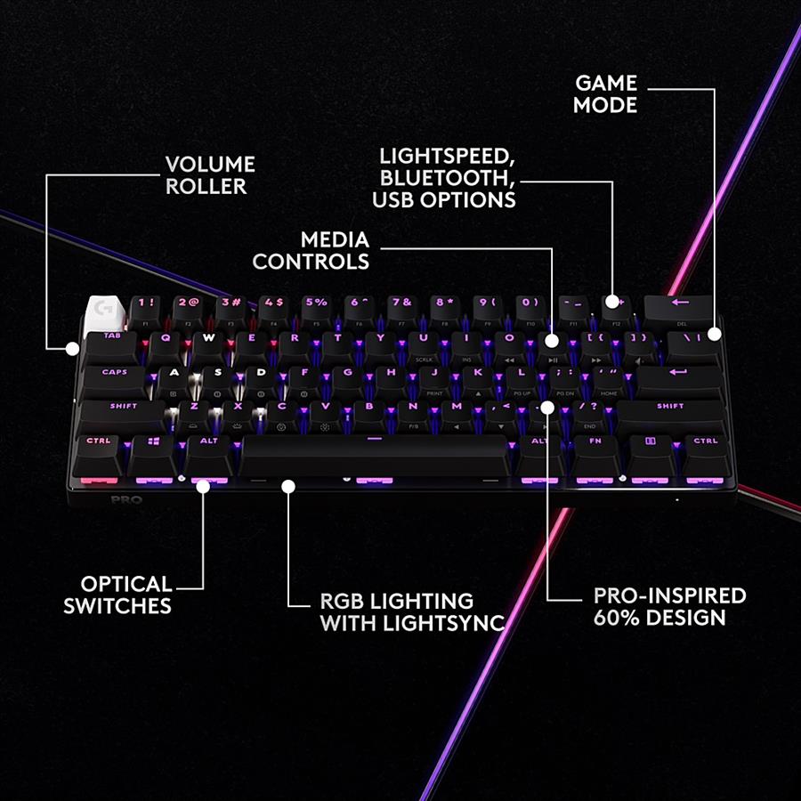 Teclado Wireless LIGHTSPEED X60 PRO 60% para juegos con KEYCONTROL, RGB LIGHTSYNC e interruptores ópticos.