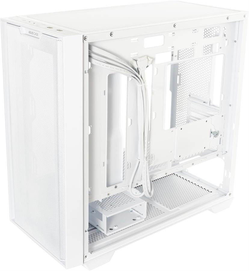 El gabinete micro-ATX ASUS A21 Blanco ofrece soporte para radiadores de 360 ​mm y tarjetas gráficas de 380mm, con dos opciones de color y administración de cables limpia.