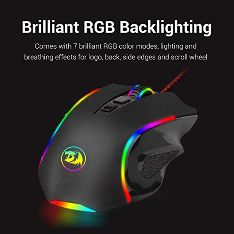 Cuenta con una banda que rodea todo el contorno de nuestro periférico que sumado a los laterales del scroll y al logo de Redragon, tendremos una iluminación RGB completamente configurable mediante software. Que el dispositivo se adapte completamente a tus preferencias cuando de estética se trata.
